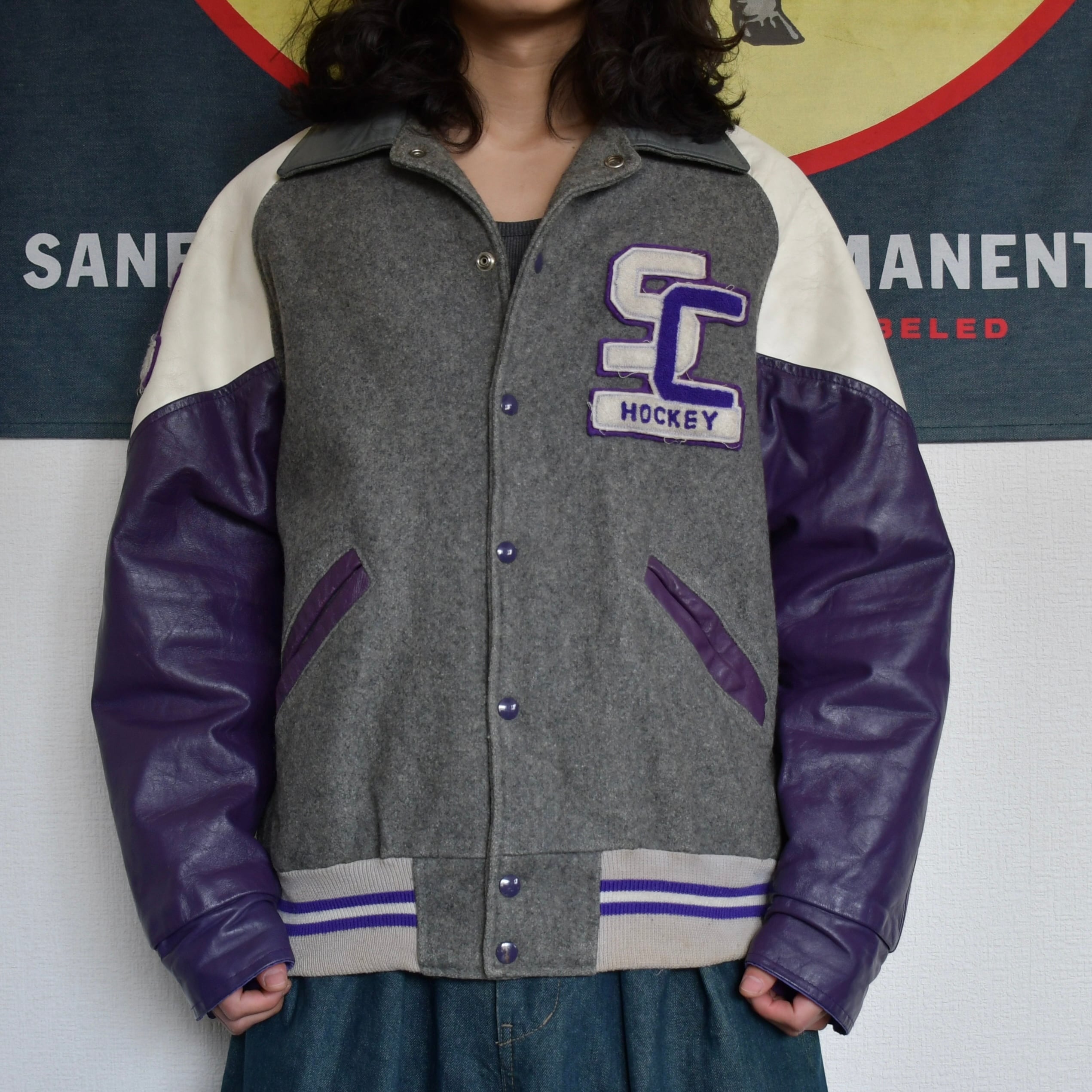 80s-90s leather stadium jacket