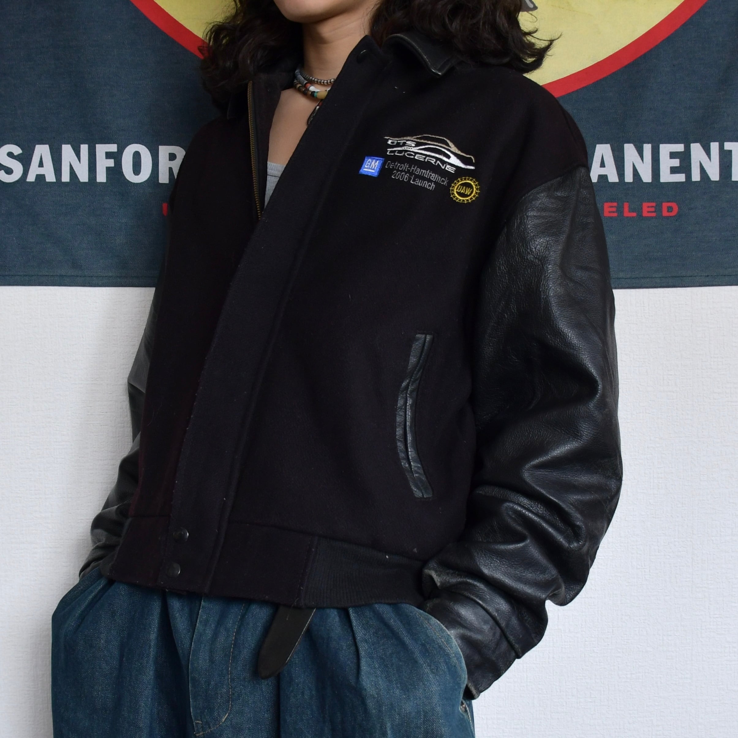 90s-00s leather stadium jacket