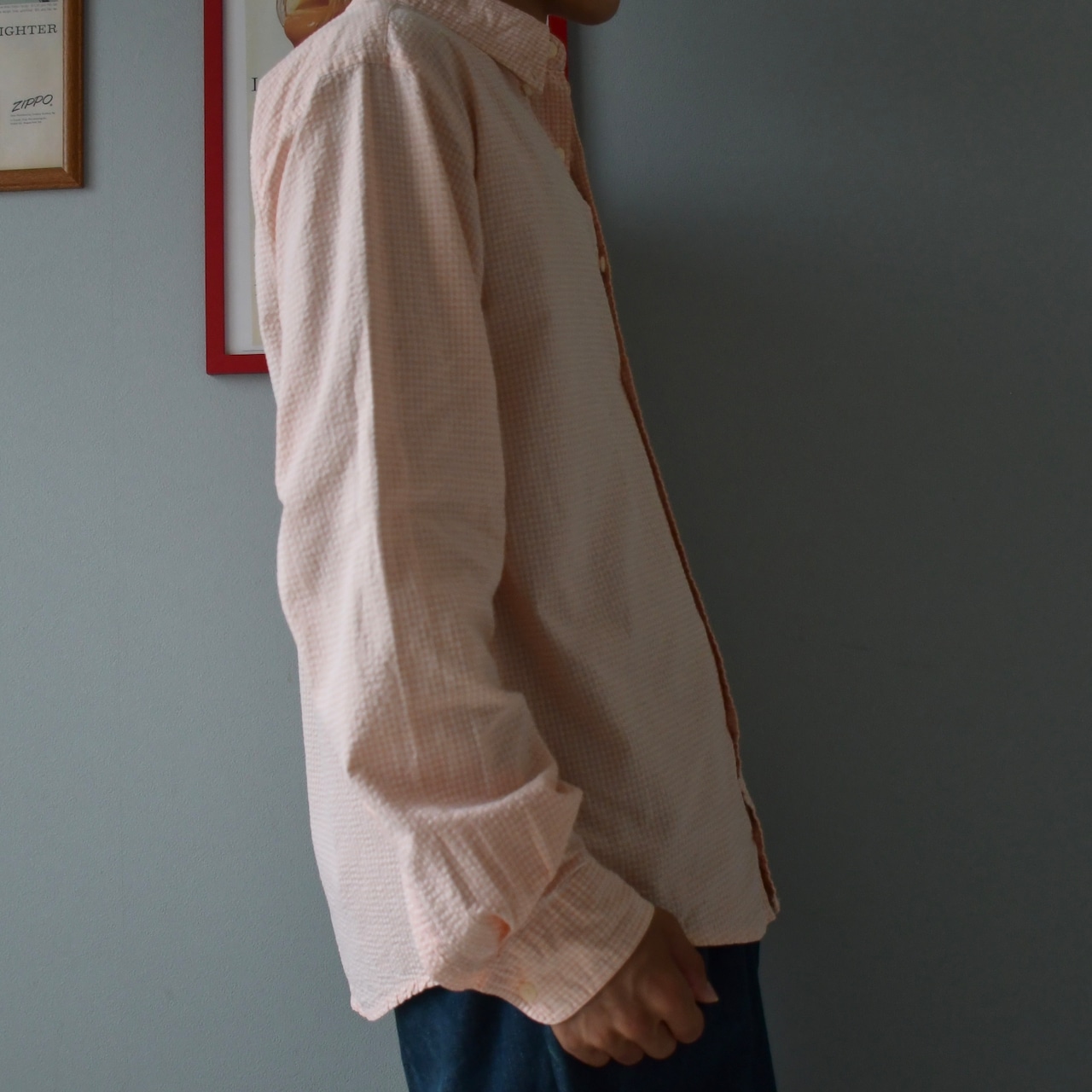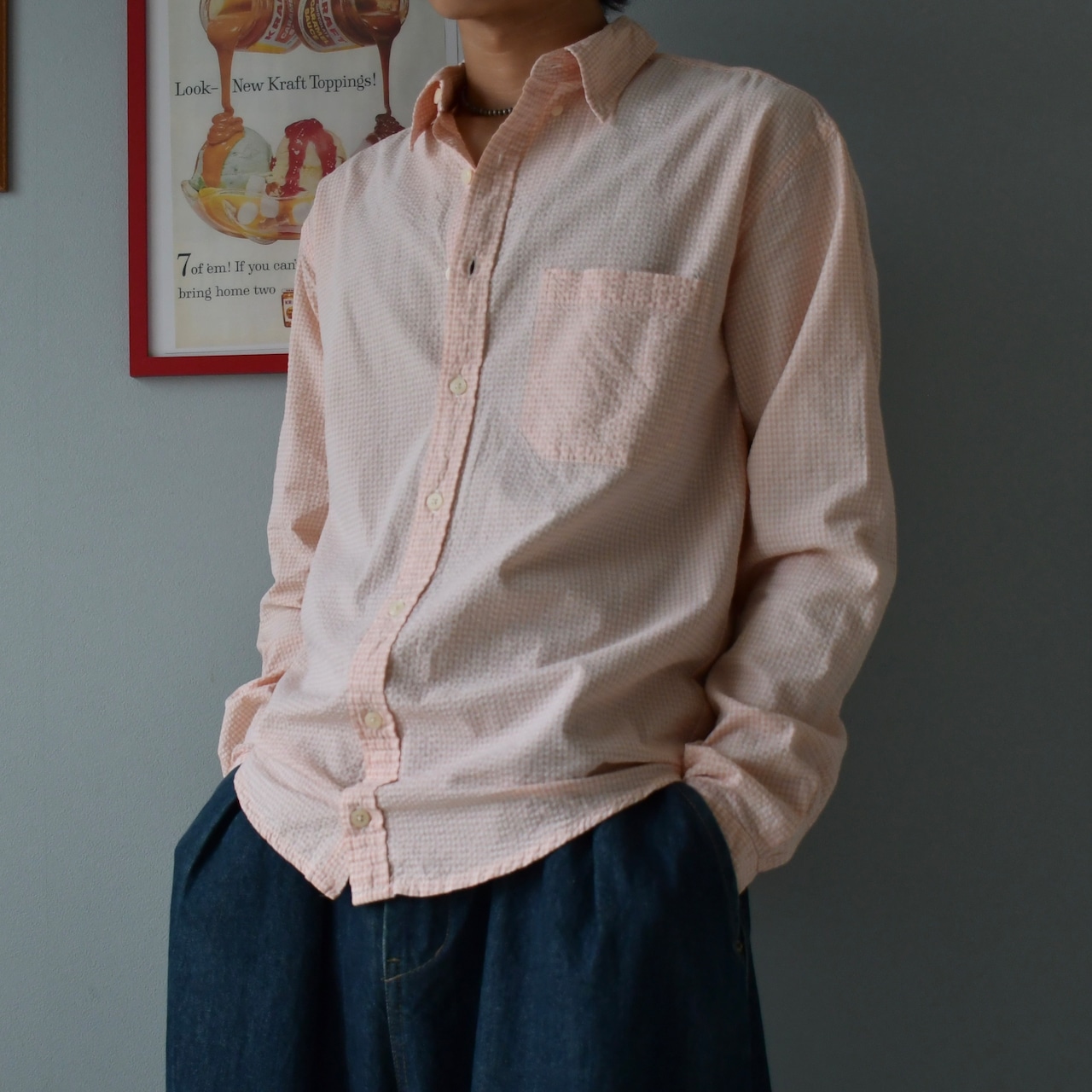 80s llbean seersucker checked shirt