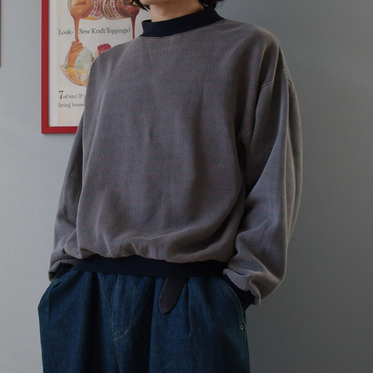 80s-90s Stripe mock neck sweat