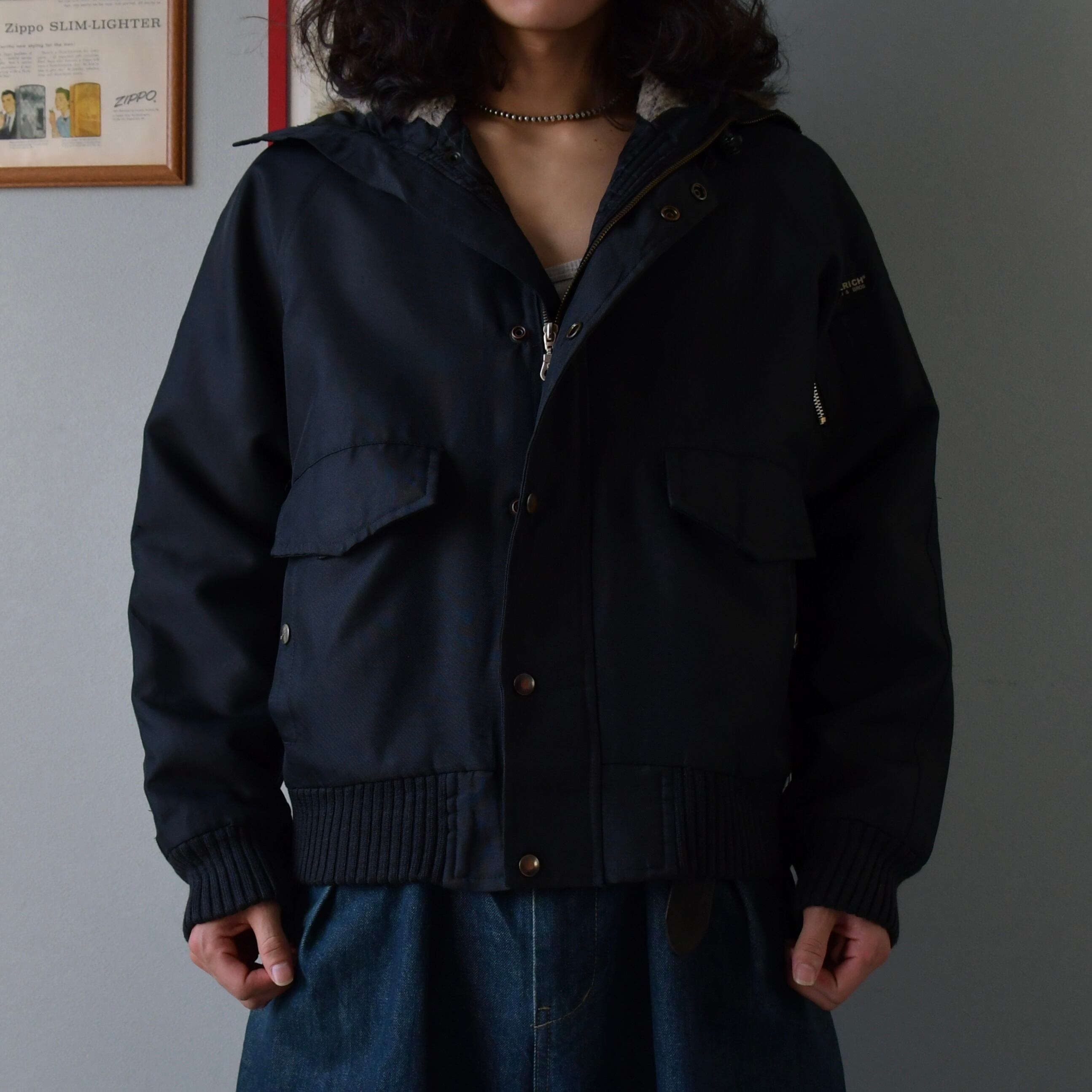 00s WOOLRICH faux fur Hooded rib jacket